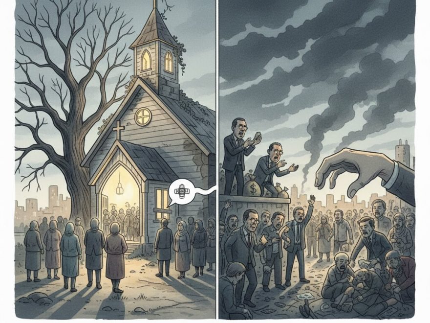 Ketika gereja tidak hadir secara dewasa, ruang publik segera diisi oleh mekanisme-mekanisme tersembunyi. Dalam konteks politik, iman dengan mudah dijadikan alat mobilisasi. Umat dipecah, suara diperdagangkan, dan kantong-kantong jemaat terkoyak setiap musim pemilihan. Gereja mungkin tidak berpolitik secara formal, tetapi ketidakhadirannya justru memungkinkan politisasi iman berlangsung tanpa koreksi etis. Sejarah berulang membuktikan satu hal: “Ketika agama berhenti mengkritik kekuasaan, agama akan dipakai untuk melegitimasi kekuasaan.”